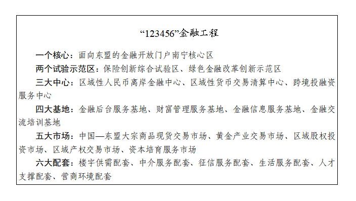 五象新區(qū)作為唯一自治區(qū)級金融商務(wù)服務(wù)業(yè)集聚區(qū),截至2019年末,五象新區(qū)入駐世界500強(qiáng)企業(yè) 34 家,中國500強(qiáng)企業(yè) 27 家,南寧核心區(qū)入駐知名金融機(jī)構(gòu) 60 家(其中省級或一級分支機(jī)構(gòu) 28 家),另有一大批金融機(jī)構(gòu)正洽談入駐中。南寧核心區(qū)內(nèi)銀行、證券、保險,以及金融科技、大數(shù)據(jù)、云計算等金融要素加速集聚,金融業(yè)態(tài)不斷豐富,引領(lǐng)全區(qū)金融業(yè)發(fā)展。力爭到2020年,基本建成區(qū)域領(lǐng)先的“大金融”產(chǎn)業(yè)格局和特色鮮明的金融產(chǎn)業(yè)功能體系,“一個核心”“兩個試驗(示范)區(qū)”“三大中心”“四大基地”“五大市場”“六大配套”的發(fā)展格局基本成型,基本建成面向東盟的金融開放門戶南寧核心區(qū),打響“中國—東盟金融城”,建成全國知名的金融集聚區(qū)。